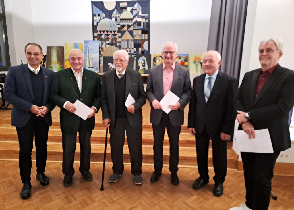 Jubilar Friedel Deller, 2. v. l., daneben Alfons Finkernagel beide für 40 Jahre und Heinrich Jünger für 25 Jahre.